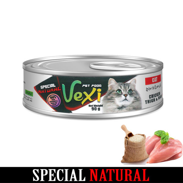 کنسرو نچرال گربه وکسی طعم ران مرغ و برنج 90 گرمی