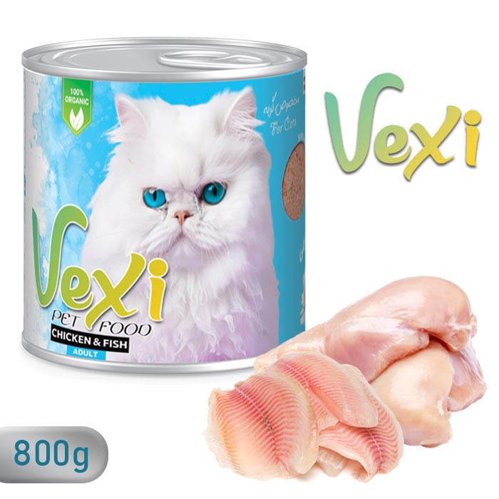 کنسرو پته ای گربه وکسی طعم مرغ و ماهی 800 گرمی