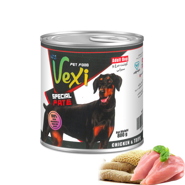 دیگر جستجو نکنید! کنسرو پته ای سگ وکسی طعم گوشت مرغ و سیرابی 800 گرمی، گویی ضیافتی شاهانه از دل طبیعت را برای پشمالوی دوست داشتنی شما تدارک دیده است.