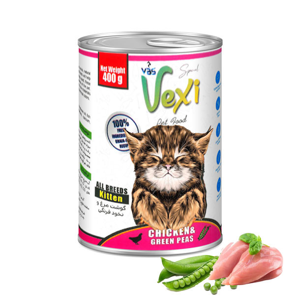 کنسرو پته ای بچه گربه کیتن وکسی طعم مرغ و نخودفرنگی 400 گرمی