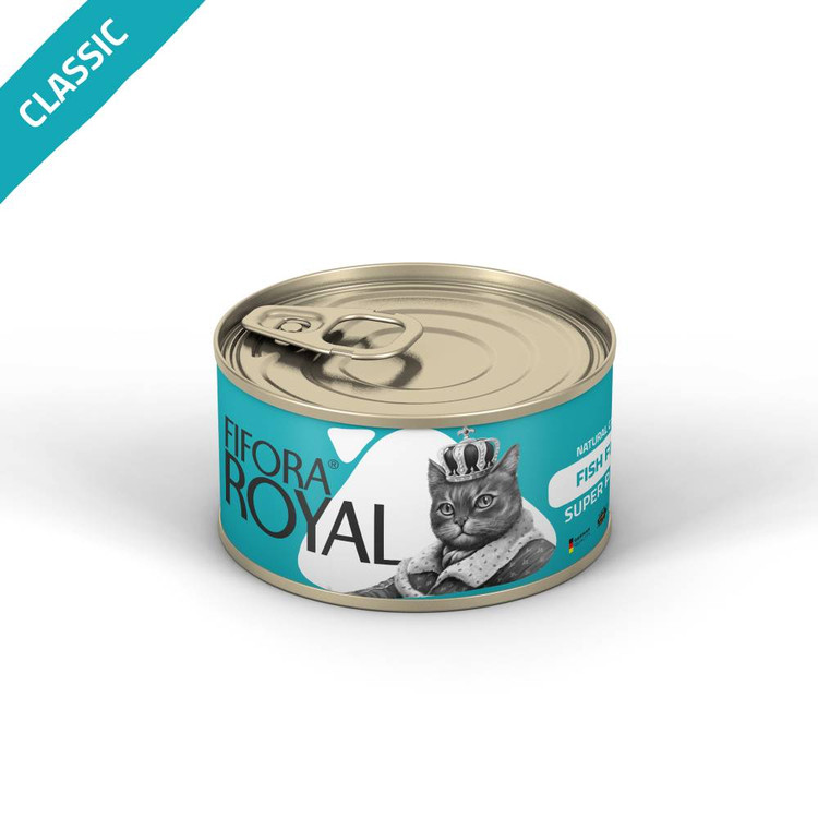 کنسرو نچرال فیفورا رویال مخصوص گربه فیله ماهی کلاسیک ۱۲۰ گرم ۱۰۰٪ فیله ماهی ریش ریش شده در سس لذیذ قابل مصرف به عنوان غذای اصلی برای گربه های بالغ و غذای مکملی برای بچه گربهها